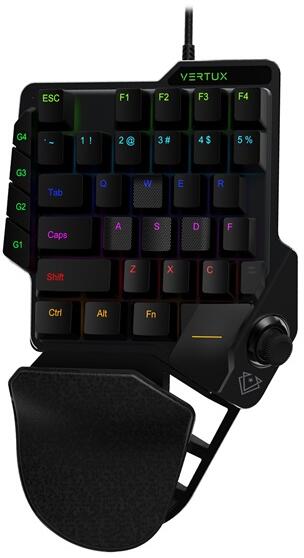 VERTUX Billentyűzet - COMBAT (Egykezes, Joystick, Full Anti-Ghosting, Makró, USB-C, RGB LED, csuklótámasz, fekete) (COMBAT) - pcx