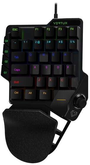 Vertux Billentyűzet - COMBAT (Egykezes, Joystick, Full Anti-Ghosting, Makró, USB-C, RGB LED, csuklótámasz, fekete) (COMBAT) - pepita